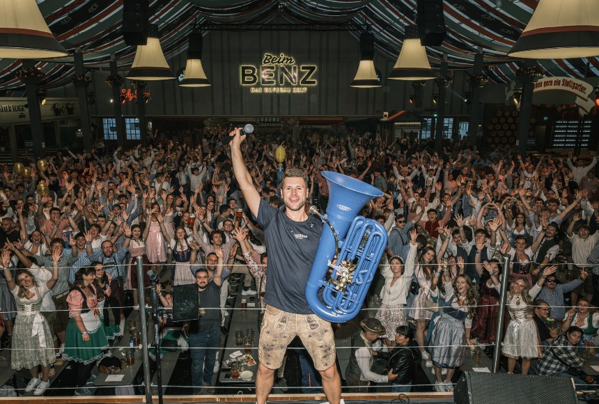 Wer Lust auf kulinarische Genüsse und echte Wasen-Stimmung hat, ist im Hofbräu Zelt Beim BENZ genau richtig. Seit 2022 verbindet Festwirt Marcel Benz seine langjährige Erfahrung im Catering mit der gelebten Tradition des Festzelts – und bringt so seine Leidenschaft für Qualität und Genuss direkt an den Tisch der Gäste.