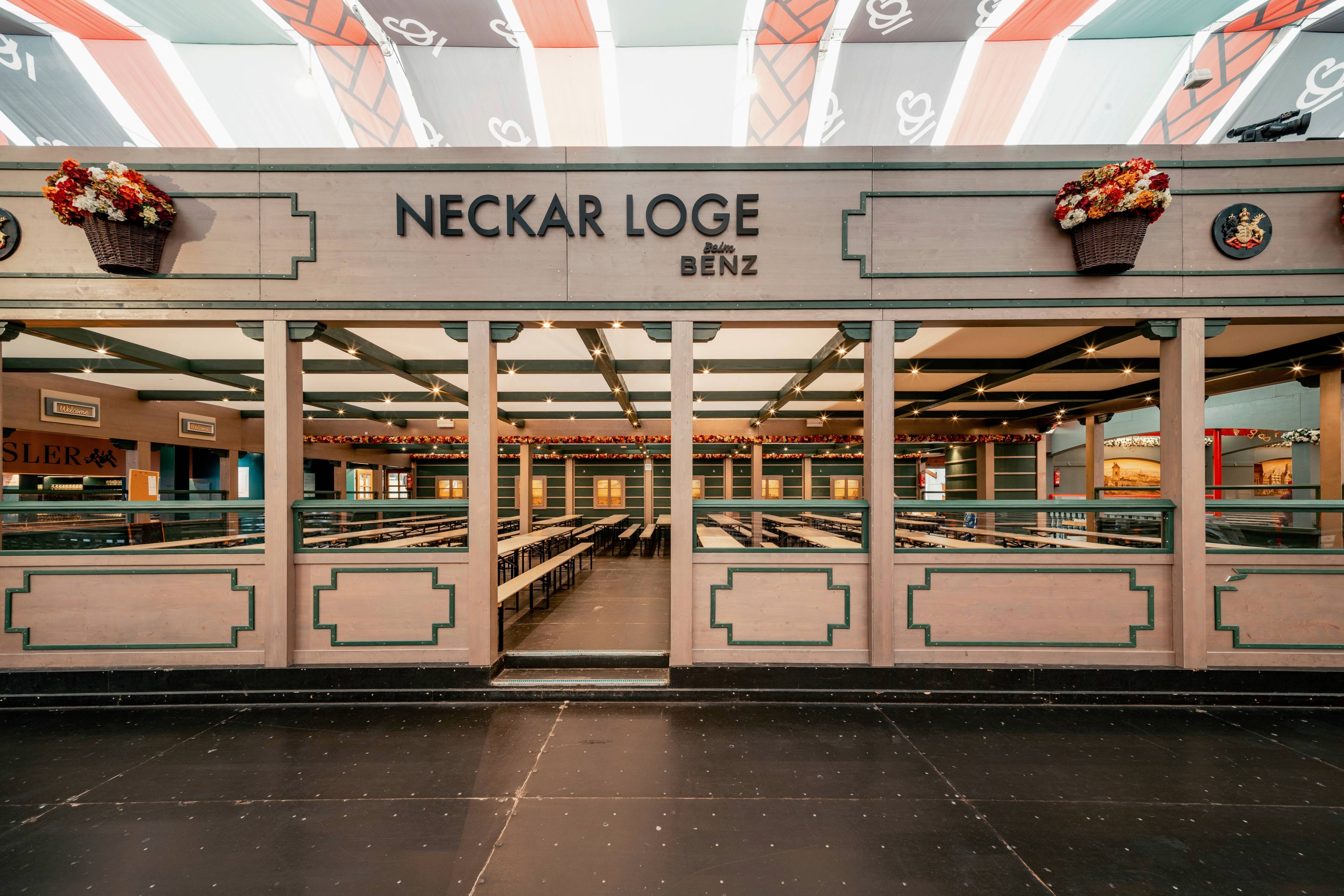 Our Neckar Box offers an elevated position with an excellent view of the vibrant activity in the beer tent. Surrounded by the lively atmosphere, you can look forward to the professional service team and a traditional menu. The proximity to the brand-new Kessler Bar, which replaces the previous Pils Bar, adds to the excitement and invites you to linger.